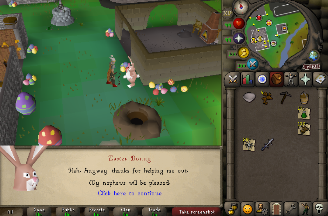 Every hour, a new seasonal ‘boss’ will spawn. For Easter, this is a Giant Easter egg which players must smash open.