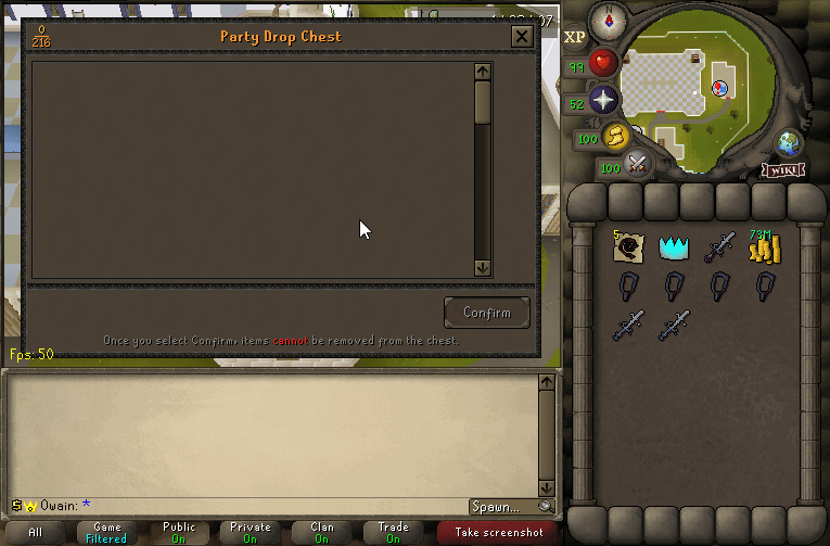 If the total chest value is worth at least 50m, a global announcement will tell everyone that a drop party is starting.