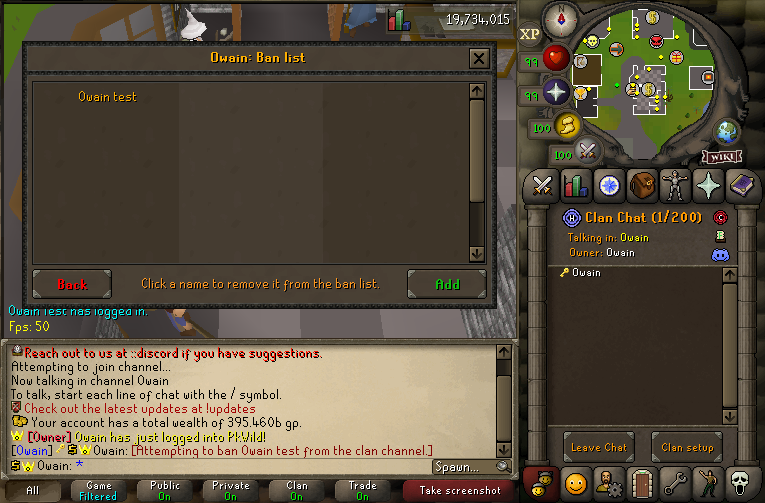 While the kick feature is good for most situations, granting a temporary 60 minute ban, for more annoying users or repeat offenders, you will now be able to permanently ban a player from entering the clan chat.