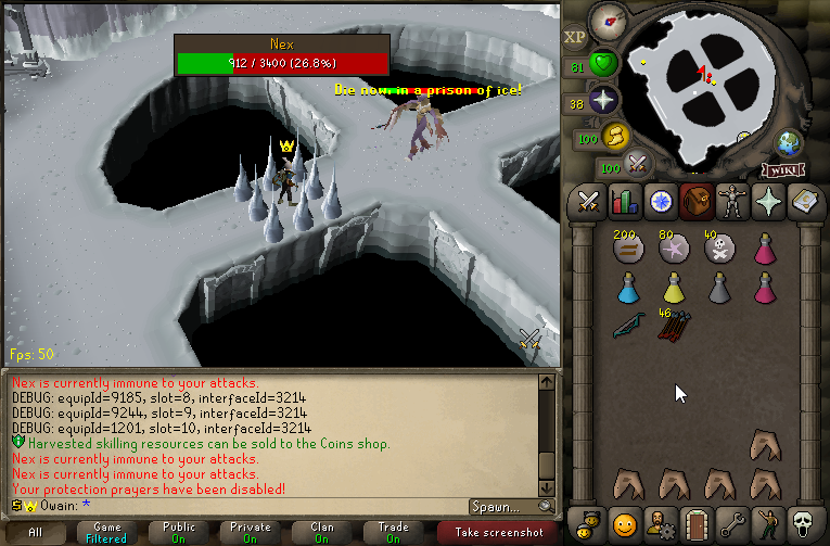 Nex is classed as a semi-dangerous death area. Any items lost on death can be reclaimed from the chest in the lobby area outside.