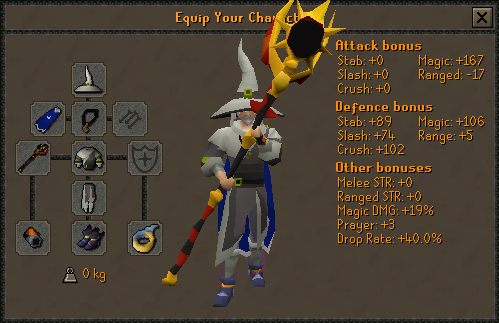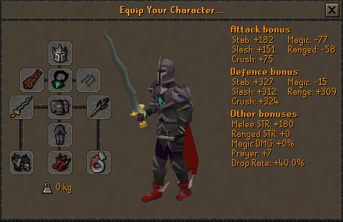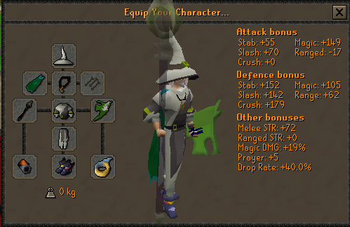The equipment interface has been re-designed to match OSRS. You can also see your drop rate boost in the 'Other bonuses' section.