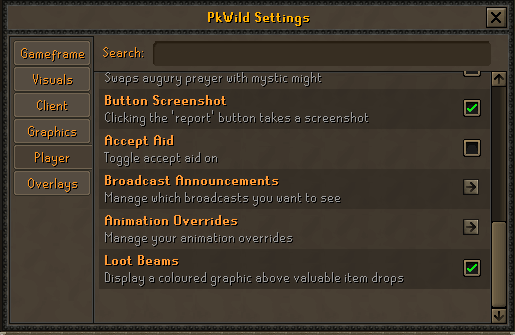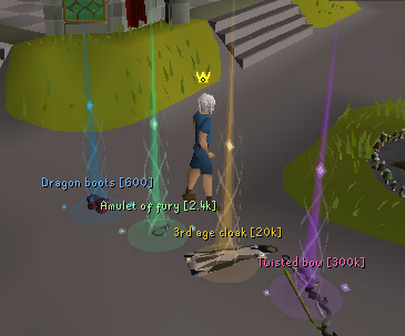 Loot beams are brightly coloured graphics that can be toggled to appear above a valuable item on the ground.